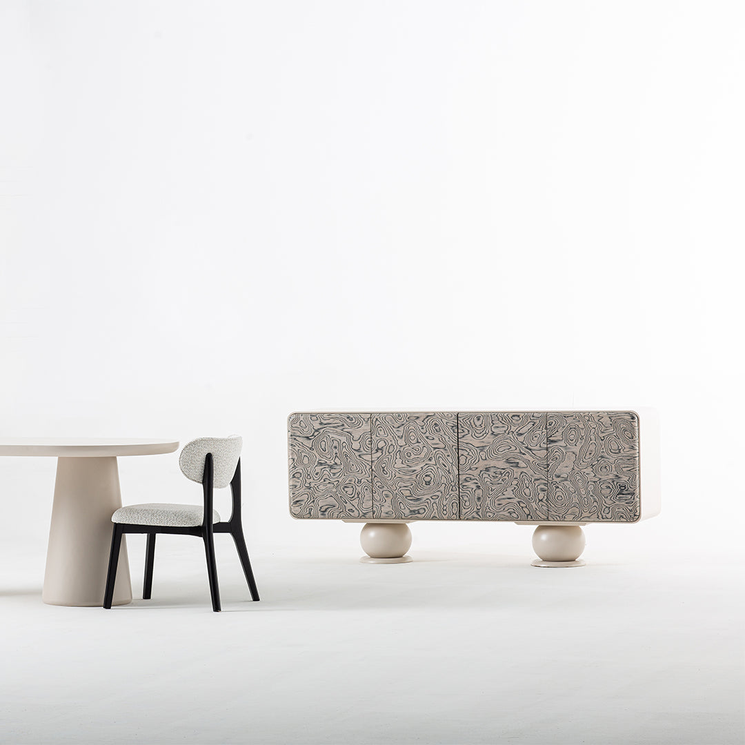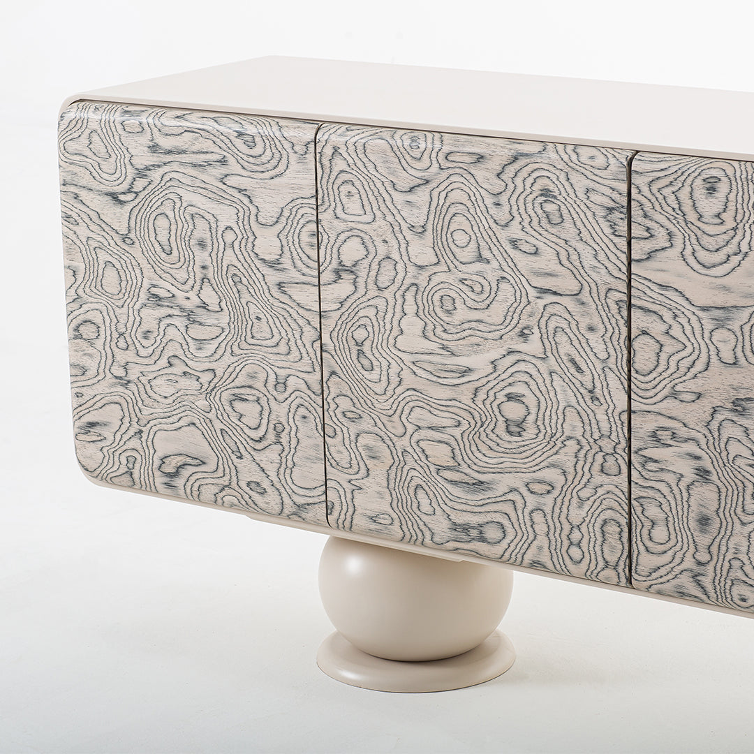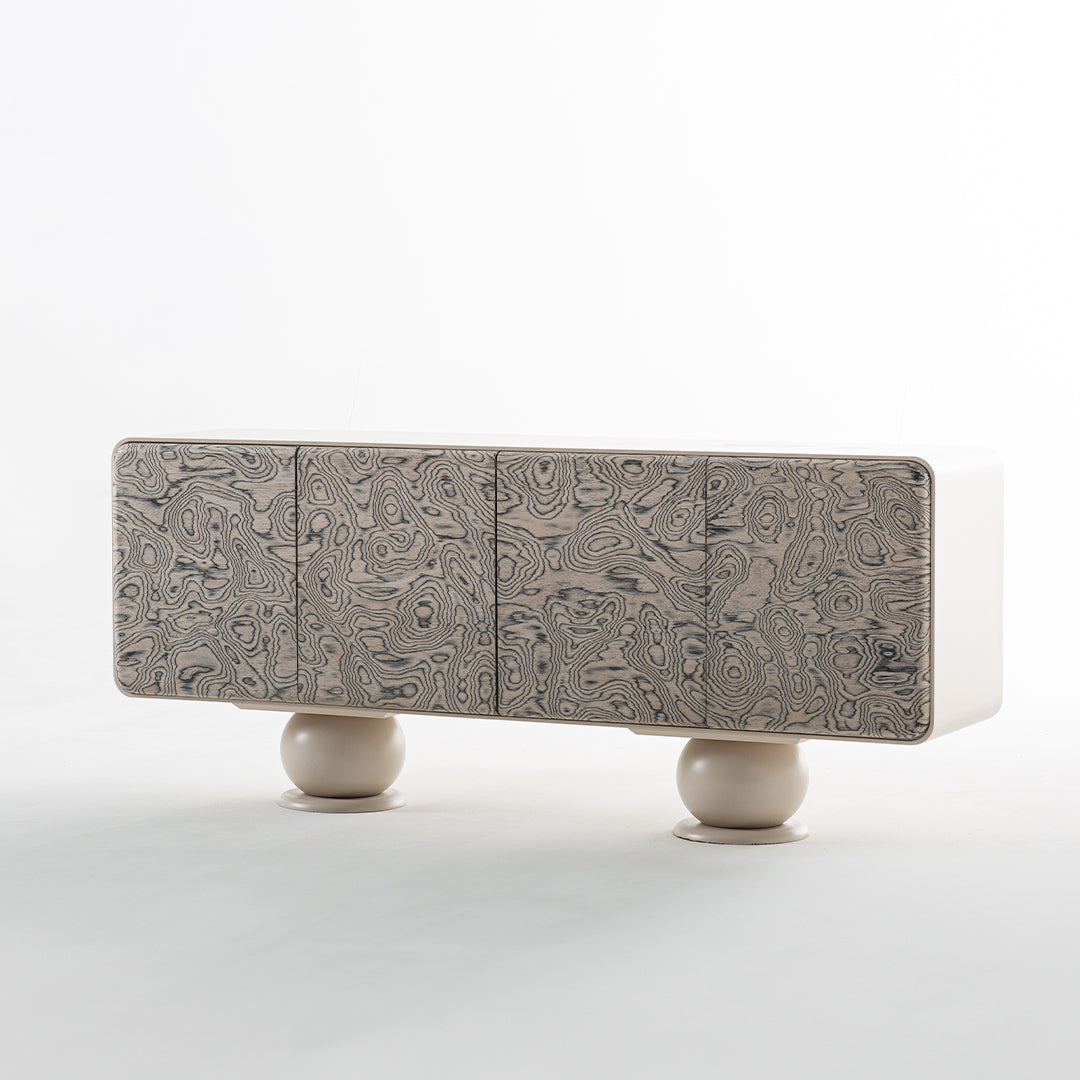 Evinizin havasını değiştiren bu tasarım, yuvarlak ve dikkat çekici ayaklarıyla sadece bir TV ünitesi değil, aynı zamanda estetik bir obje olarak da ön plana çıkıyor. Zamansız tasarımı ve doğal malzemesiyle, hem modern hem de klasik tarzda döşenmiş mekanlara uyum sağlar. Her gün kullanılacak bir eşya olmasının yanı sıra, evinizde zamansız bir zarafet katmak için tasarlandı.