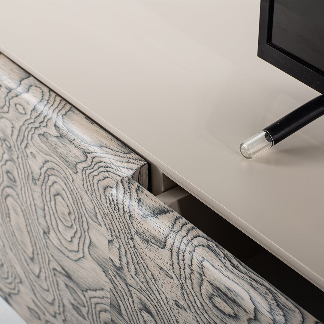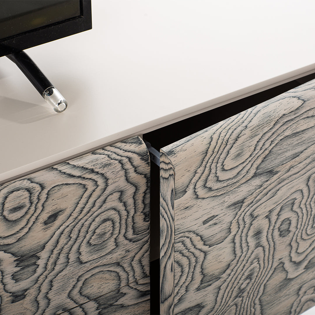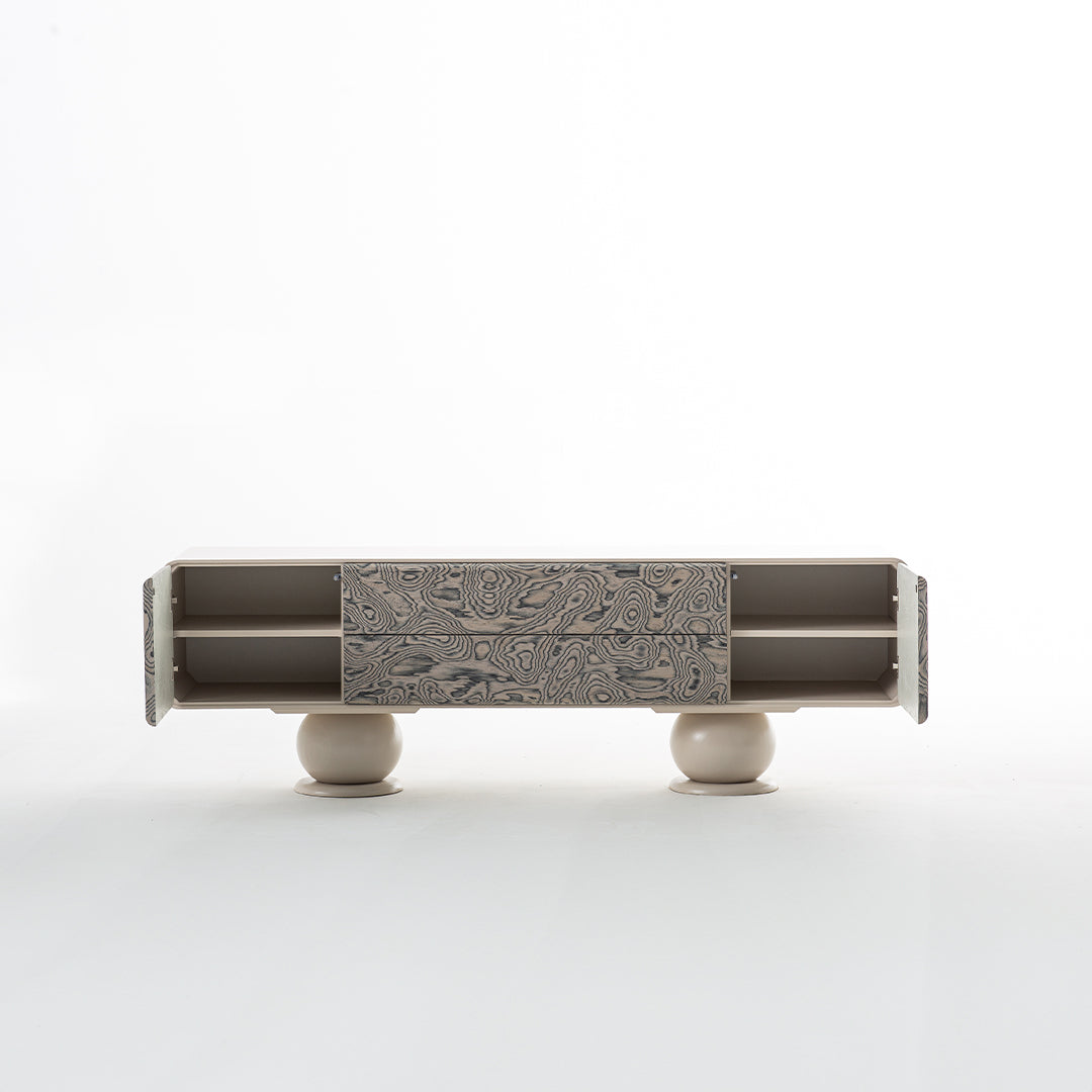 Evinizin havasını değiştiren bu tasarım, yuvarlak ve dikkat çekici ayaklarıyla sadece bir TV ünitesi değil, aynı zamanda estetik bir obje olarak da ön plana çıkıyor. Zamansız tasarımı ve doğal malzemesiyle, hem modern hem de klasik tarzda döşenmiş mekanlara uyum sağlar. Her gün kullanılacak bir eşya olmasının yanı sıra, evinizde zamansız bir zarafet katmak için tasarlandı.